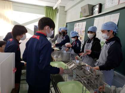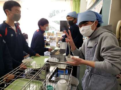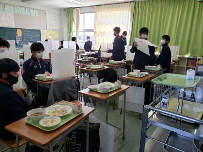 パーテーションで区切られた中での今年度の給食。会話もなく美味しさを友だちと共有できなかったことは残念でしたが、生徒たちにとっては楽しみな時間であったことは変わりありません。放送委員会のみなさんは、少しでも給食時間を楽しんでもらおうと、様々なジャンルの音楽を選んで盛り上げてくれました。
