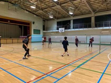基本的なショットの確認をしながら練習したり、ゲーム形式の練習を行いました。2.3年生が1年生にダブルスの進め方を教えている姿はチームとしてとてもよいと感じています。