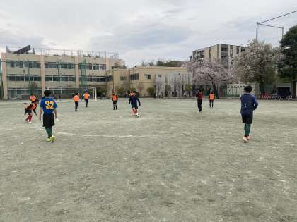 悪天候が予想されていましたが、活動中には雨に降られることもなく、卒業生と在校生で試合を楽しんでいます。