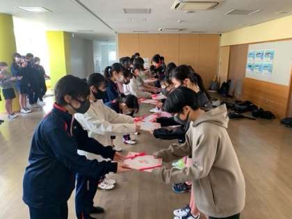 引退してからブランクがあったとは思えないくらい、素晴らしいプレーを見せてくれました。中学校生活最後のミーティングでは、3年生一人一人から一言ずつ後輩へメッセージを伝えました。
