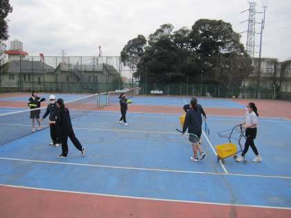 女子テニス部は、このあと試合形式の練習に移るところです。