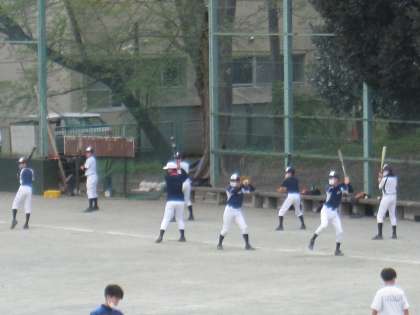 野球部はバッティングのタイミングやフォームの確認を行っています。