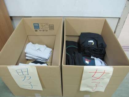 玄関での制服リサイクルは終了しました。今後はPTA室に展示しておりますので、必要な方は副校長までお声がけください。また、今後、制服、ジャージ等をご提供いただける方は、教職員にお渡しください。