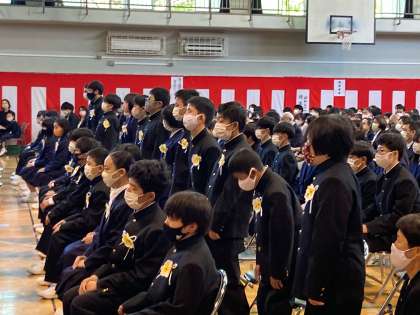 呼名の最後を飾るのはI組です。222名の新入生を砧中学校へお迎えいたします。