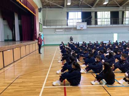 集合、整列、話を聞く姿勢、流石は3月まで各小学校でリーダーをしてきた生徒たちです。