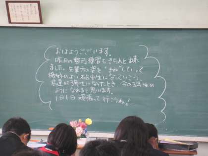 1年生の担任の黒板メッセージもご覧ください。(副校長)