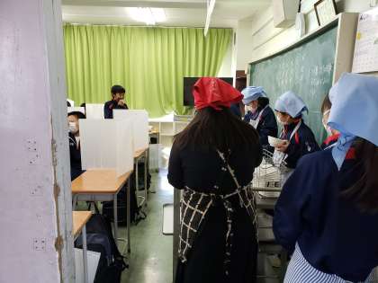 1年生、給食がスタートして1週間ほど経ちました。2・3年生に比べると配膳準備に少し時間がかかりますが、段取りはスムーズとなってきました。配膳を待つ生徒たちも整然とした動きができています。