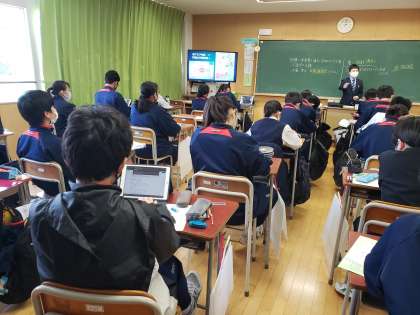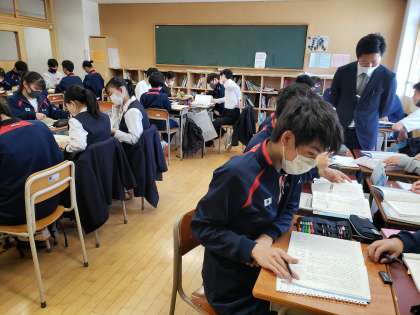 国語は井上ひさしの小説から。対話文の中にある回想箇所を話し合いながら確認しています。日頃の朝読書経験が生きますね。