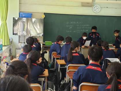 6校時は各学年とも学活です。運動会の種目出場者を選出中です。写真は2年生の様子です。昨年度末の球技大会以来、自治活動が定着してきた2年生。体育委員を中心として話し合いが始まりました。推薦する方法、持ちタイムで決める方法、各クラスの持ち味が伺えます。もちろんスポーツですから勝つことが目的ですが、それまでの過程も大切な学習です。