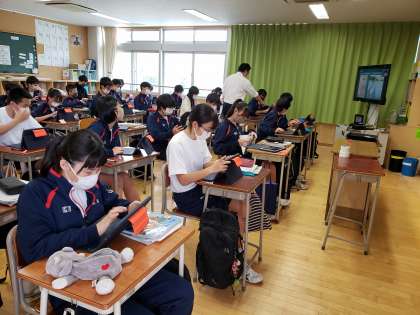 本日午後もオンライン授業を行いました。パスワードを忘れたり、ネットワークが途中で切れるなどの課題もありましたが、全体的にはスムーズに実施することができました。まずは使い続けることでタブレットに慣れることが大切です。明日以降1・2年生でもスタートします。