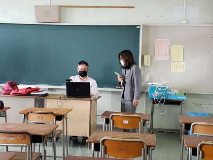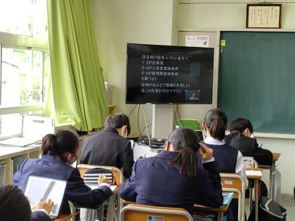 オンライン授業、1年生国語でも始まりました。生徒たち、真剣に取り組んでいます。