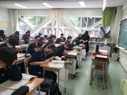 久しぶりの授業です。3年生はプレ運動会に向けて全員リレーの練習です。バトンのスムーズな受け渡しはさすがです。2年生の家庭科ではバランスの良い朝食について生徒が考えていました。量だけでなく栄養素も考慮しています。1年生数学は正の数と負の数の加減についてです。負の数の概念把握が大切ですね。