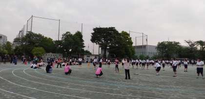 各クラス、縄の回し手の掛け声で大縄跳びが始まりました。