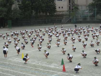 生徒の進行により2年生のプレ運動会が始まりました。