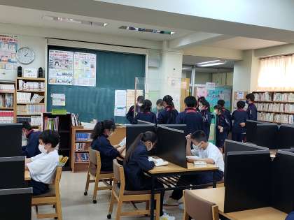 図書室では本の貸出し数が連休前後から一気に増えました。窓口業務の図書委員も大忙しです。昼休みや放課後の図書室は、生徒にとって心落ち着く居場所になってきました。