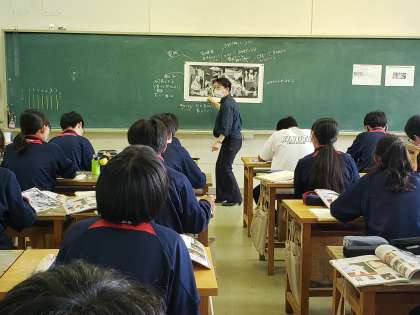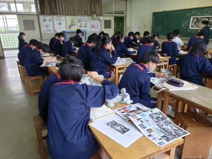 ピカソの『ゲルニカ』。世界的に有名なこの絵画。一見何を表現しているのか難解な絵ですが、部分部分に注目しながら、作者の絵に込めた意図を読み解いていきます。生徒たちは大人が見落としてしまいそうな箇所にも着眼しています。観察力と推理力向上にもなりますね。