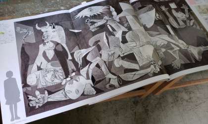 資料には人の身長と比べた時の絵の大きさを示す図解もありました。改めて『ゲルニカ』の大きさを実感しました。