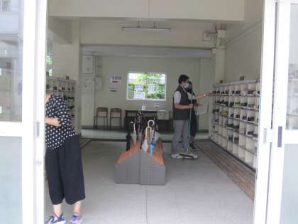 登校時、副担任の教員は玄関で生徒を迎え、出席状況を確認し、玄関を掃除します。