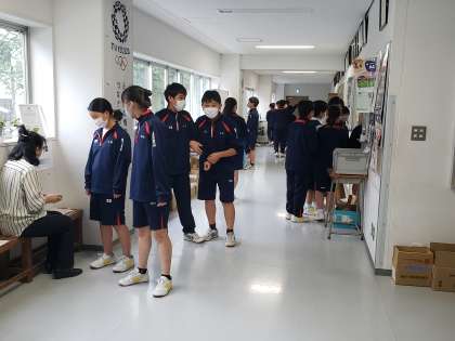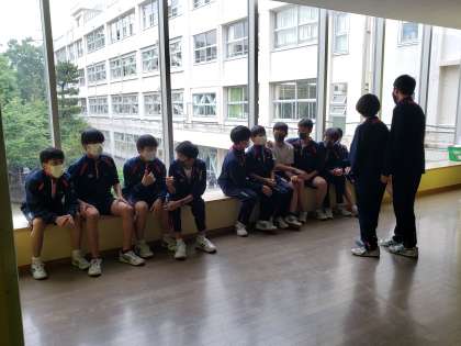 昼休みは残念ながら校庭が使用ができませんでした。こういった日はついエネルギーが余って校舎内での怪我が多くなりがちです。生活指導部の教員が声かけをしながら巡回しています。