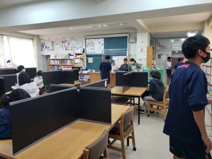昨日は臨時休館だった図書室。今日は開館しました。昼休みの居場所としてすっかり定着している図書室。一日休館でも残念そうにしている生徒を何人か見かけました。今日は使用できてよかったですね。