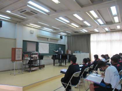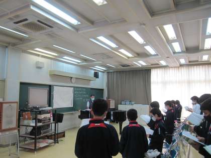 マスクをしたままで、大きな声では歌えませんが、全員で確認した曲想を意識した合唱になっていました。(副校長)