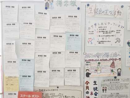 今回紹介した意見は一部ですが、生徒からの率直な疑問などに生徒会役員は丁寧に答えています。そして教職員が答えるべき意見には様々な機会をとらえて回答していきますね。大切なことは双方向のやり取りを日常化していくことです。学校に対して厳しい意見も公開しています。意見をオープンにすることで、生徒による自主的な活動がより活発になればと考えています。