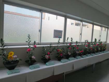 どのように生けるか、試行錯誤でしたね。きれいな作品が廊下にずらりと並びました。