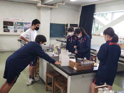 朝7時30分過ぎ、理科室で生徒たちが実験をしていました。