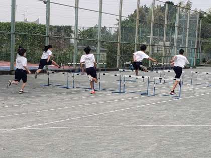 陸上競技の走り幅跳びとハードル走が行われています。今年度陸上競技の単元では男女共修で授業計画を立てました。ただ単に一緒に体育を行うということではなく、男女が共に学ぶことで何を得るのかという点について教員間で繰り返し議論してきました。