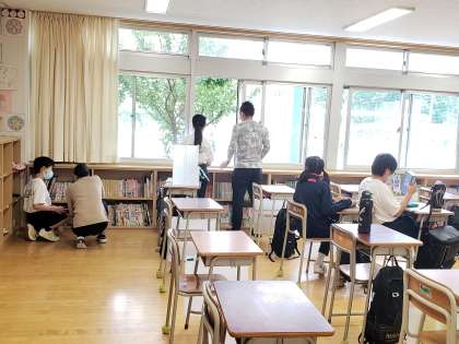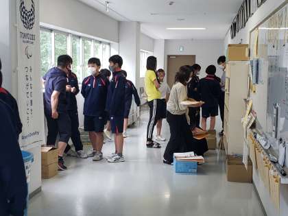 職員室前やI組の教室では昼休みに生徒と先生の和気あいあいとした光景をよく見かけます。この時間に先生といろいろなお話をすることを楽しみにしている生徒も多いようです。授業や部活動の時とはまた一味違ったコミュニケーションの機会となっているようです。チャイムが鳴ると残念そうに戻っていく生徒の姿が印象的でした。