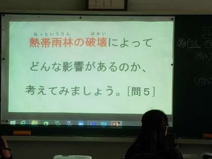 社会科は暗記教科と言われてきました。しかし社会の動きは決して静態的ではなく、動態的なものです。東南アジアの国々での農産物、例えばパーム油などは私たちの暮らしに役立ち、便利な生活を保障してくれます。しかし、その農産物のために熱帯林が破壊されている現状もあります。豊さと自然環境の両立はできないものでしょうか。