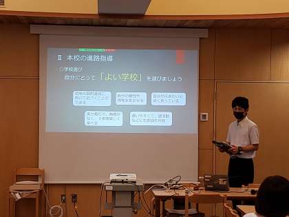 生徒対象の進路説明会の後は、保護者対象の説明会が行われました。オンラインで発信しましたが、直接来校いただいた保護者の方もいらっしゃいました。緊急事態宣言下では、オンラインと来場を合わせての会議を積極的に導入してまいります。