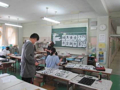家庭 スウェーデン刺繍に黙々と取り組んでいます。今年始めたばかりの生徒もコツをつかみ大きな作品に取り組み始めました。