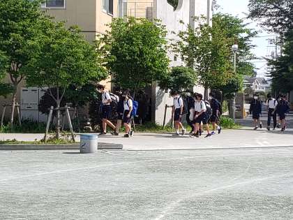 今日も気温上昇の予報です。今朝の職員打ち合わせでは改めて熱中症対策の徹底を図ることを確認しました。校庭での活動前のこまめな暑さ指数チェックなど、活動実施の可否判断を入念に行います。また保健室来室者の状況を見ながら、下校時間の変更など柔軟に対応してまいります。