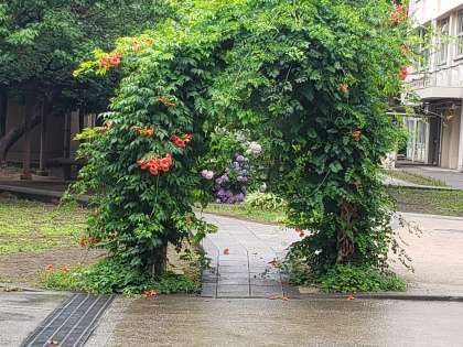 朝は雷鳴も聞こえてくるなど、生徒の登校時間の天候が不順でした。登校時には何人かの教員で見回りを行いましたが、雨に降られることなく生徒たちは教室に入りました。