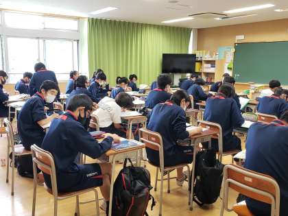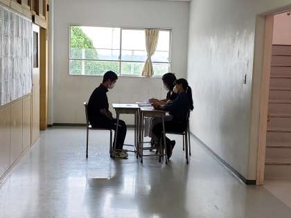 期末考査は終わりましたが、続いて個別の英語面接が始まりました。英語オンリーでの受け答えはやはり緊張するものです。教室内では自分の順番を待っている生徒が、何度も練習を繰り返していました。平常心で臨みましょう。