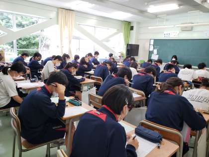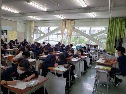2年生火曜日の朝は「社説学習」に取り組んでいます。