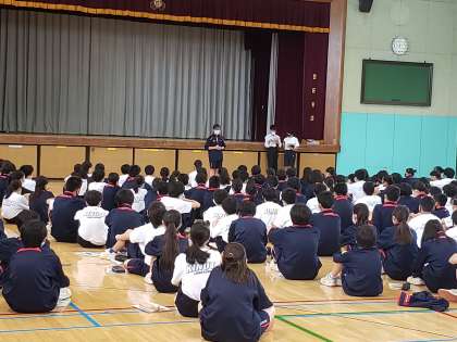 学年集会の運営は、移動教室実行委員の生徒が中心となって進めていました。1年生の今後の活躍が期待されます。