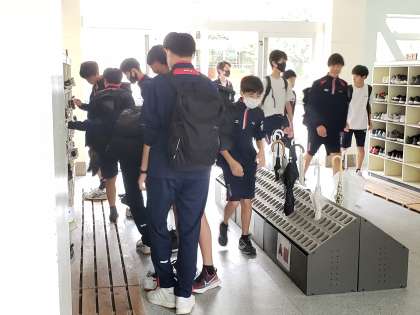 写真上段は8時23分頃の玄関の様子です。朝の最も慌ただしい時間です。そして写真下段は8時25分の様子です。登校時の喧騒が、2分間で静寂へと移り変わります。このメリハリの良さもまた砧中生徒の強みだと思っています。