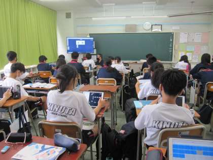 「目には青葉 山ほととぎす 初鰹」という有名な俳句を例に季語を学んだあとに各自が俳句を作ります。提出はロイロノートです。画像検索をしたり、季語の表を確認したりとマルチウインドウでの作業にも慣れています。(副校長)