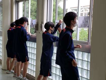 以前にタブレット端末で撮影した学校内の風景。それをトレーシングペーパーに描き、絵として完成させるため、この後は着色をしていく作業となります。風景の細かい箇所も丁寧に書き写していました。どんな作品に仕上がっていくのか楽しみですね。