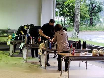 生徒たちの夕食後、教職員は生徒の水筒に新しいお茶を入れる作業に取りかかります。お茶は熱いので生徒の火傷防止のために教職員が詰め替え作業を行います。