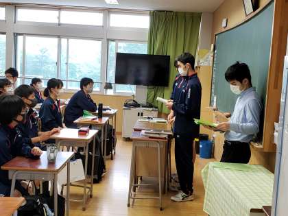 その3年生の朝学活。昨日の委員会報告が行われていました。今やるべきことを一つずつ、その積み重ねこそが大切ですね。