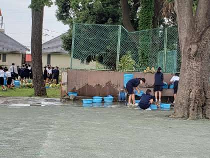 今年度も1年生技術で「大根の栽培」の授業が始まりました。今日は雨も上がったので、テニスコート横の緑地で活動が行われています。収穫するまでは一定の期間を要する息の長い活動ですが、まずは土づくりが基本となります。見事な大根の収穫まで、丁寧な手入れをお願いしますね。