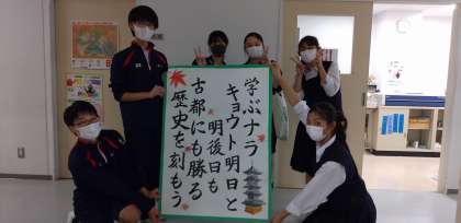 先週、3年学級委員の皆さんが居残りして作成したものです。今日、学年の階段に掲示されましたので、作成の様子をお知らせします。出来上がった時の委員の皆さんの達成感とそれを報告するときの笑顔が素敵でした。(副校長)