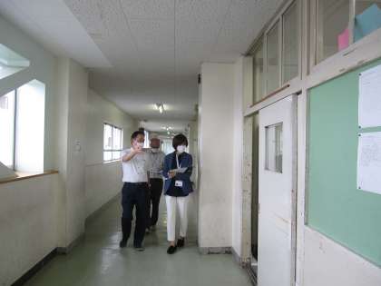 校長が教育長、学校経営支援アドバイザーをご案内しています。各授業を丁寧にご覧いただいています。(副校長)