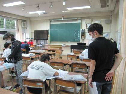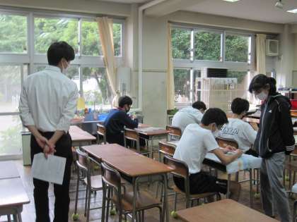 I組3年生のクラスはスウェーデン刺繍です。昨年から続けている作品はみごとです。通常級の教員も生徒たちが根気強く取り組む姿に感心し、生徒一人一人に声をかけていました。(副校長)
