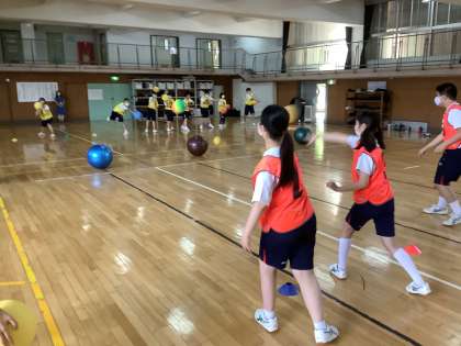 最後の競技は…バランスボールを使ったドッチボールです!