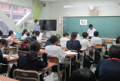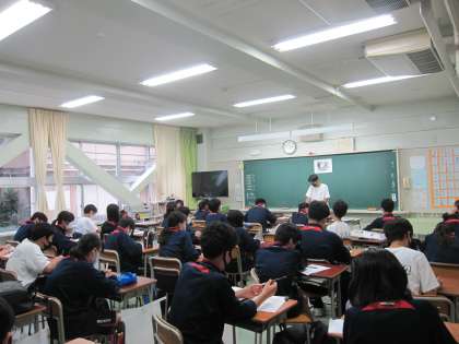 今日は、各班の代表に選ばれた生徒がクラスで発表しました。