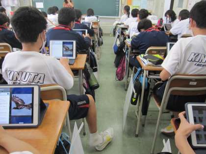 生徒は理科でどのようにipadを使うのか興味深々です。